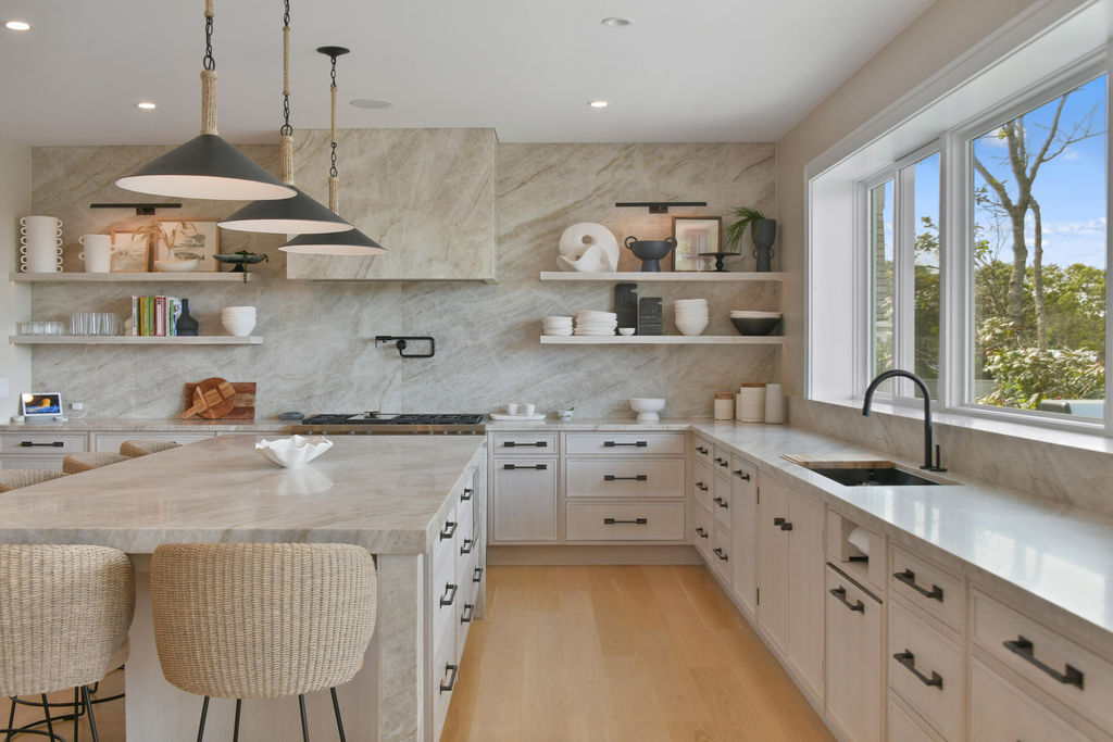 This stunning waterfront home is nestled within a coveted North Falmouth community and offers a private beach and association dock. Completely reimagined by an elite team of designers and builders, this sophisticated 5 bedroom residence features sweeping ocean views and spectacular sunsets! High-end finishes, custom hardwood floors, tile, stone and millwork are found throughout this special home. Entertainers delight with a large open-concept first-floor that centers around a stunning Christopher Peacock kitchen. The home office, cozy den, lower level lounge, gym, and sauna provide space for retreat, or large scale gathering. The resort-like exterior with large front lawn, gardens, sundeck and infinity-edge pool create the perfect setting for both relaxation or family activity, alike. A private path with direct beach and water access is a real treasure. This oceanfront property epitomizes sophisticated coastal living, blending thoughtful design with modern systems in a convenient location. A pleasure to show, by appointment only.